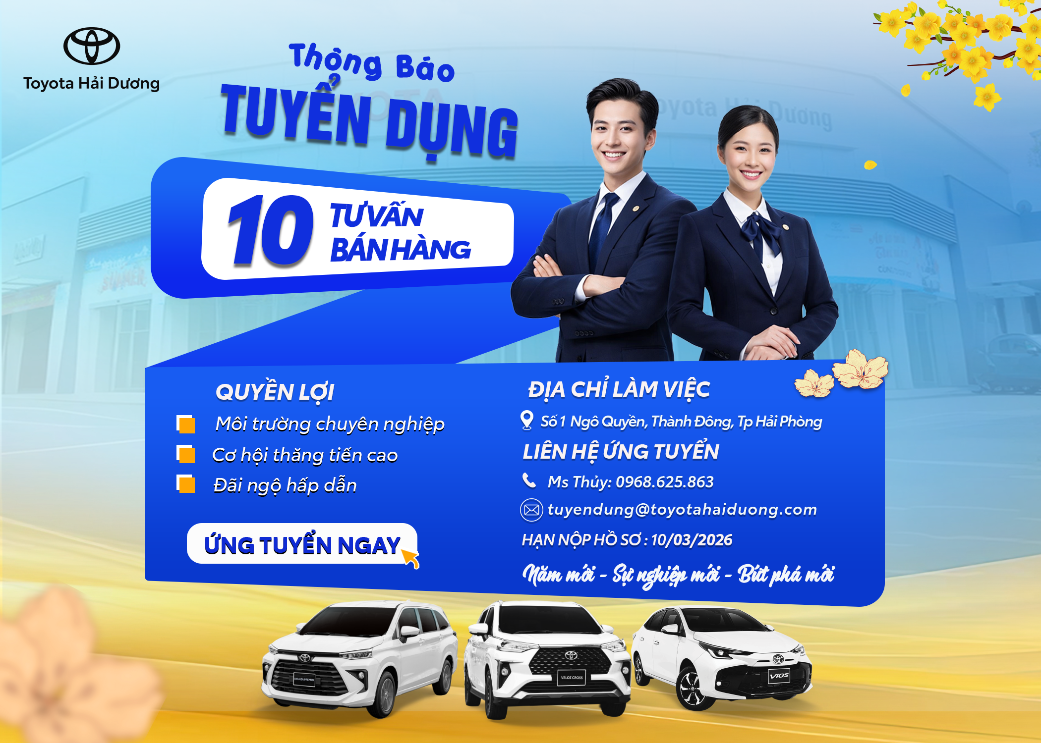 TOYOTA HẢI DƯƠNG TUYỂN DỤNG THÁNG 02/2026